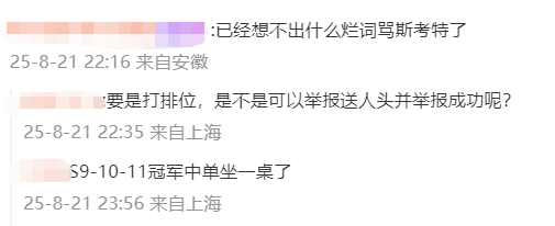 对此,很多网友都表示懒得喷了:“结束吧,直接给盗的比赛服账号举报得了”,“已经想不出什么烂词骂Scout了”,“Scout最离谱的是,送了一整场,完全不值钱的1-8-1,最后BLG推基地了,他搁后面啥也不干保KDA”……
