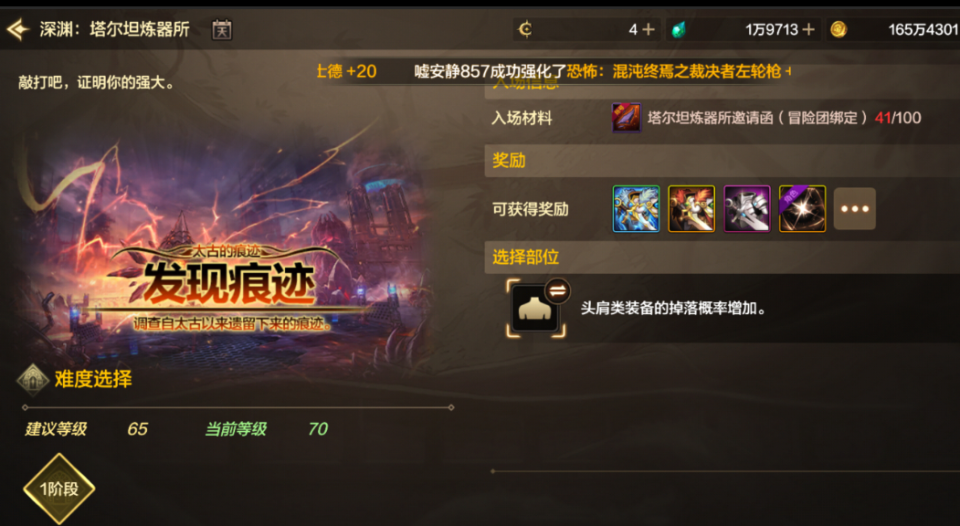 不过要知道这大深渊和其他的深渊不同,大深渊可是能进行许愿的,被许愿的部位的掉落率可是能增加的。虽然这增加的爆率并没有明确说是多少,但这也确实是可以提高深渊爆率。所以说大家可以利用这个机制,许愿自己四等一的部位,这样爆率就更高。而在这之前大家要先刷深渊集齐四件史诗,在四等一的时候再去许愿刷大深渊,这样爆出想要部位的史诗装备的概率就更加高了,大家也能轻松毕业了。要知道史诗套差一个部位的话,那可是会少8000套装的抗魔值的。
