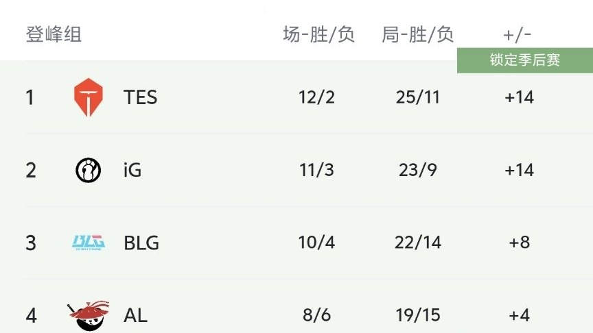 LPL第三赛段组内赛已经落幕,IG以2:0比分零封BLG之后,凭借一分的分差,拿下了常规赛第二名,登峰组前四排名确定之后,季后赛的分区,也已经出炉了,根据官方的分区规则,第一和第四,第二和第三,会被划分在两个不同半区,也就是说,季后赛TES和AL同区,IG和BLG同区。