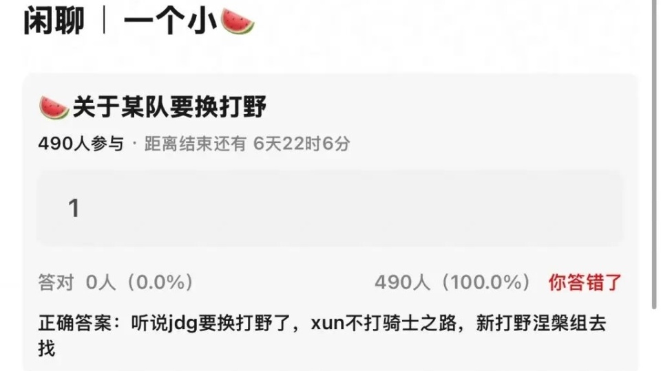 JDG上一场比赛,击败WBG完成复仇,Xun对位小天二连MVP,比赛期间,Xun还致敬国王,亮了一手小丑,有观众解读,Xun是在给BLG发信号,因为网上有人爆料:LPL有一支队伍,要更换打野,这位爆料人在答案里写的是:JDG要换打野,Xun不打骑士之路,新打野从涅槃组里找。