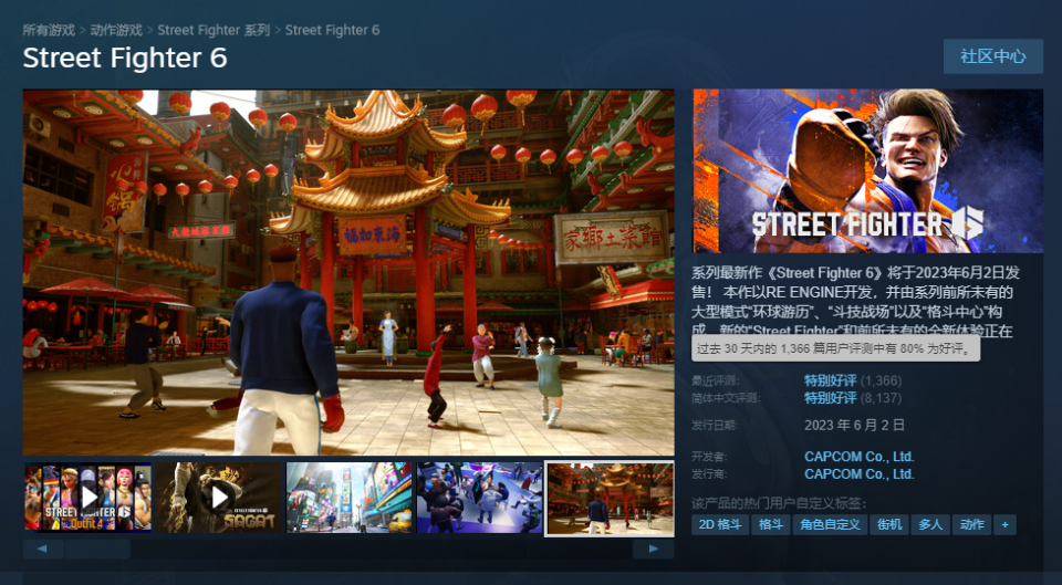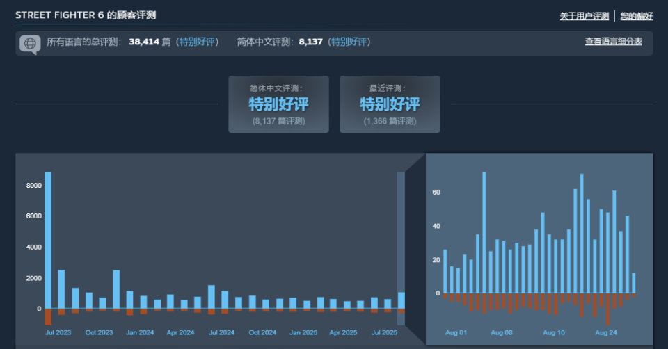发售2年多,《街霸6》Steam总评论数仍不到4万