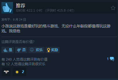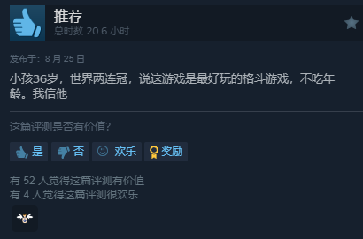 不止一位玩家表示,是因为小孩说:“《街霸6》是最好玩的格斗游戏,无论什么年龄段都值得玩这游戏”。玩家信他,所以购入了《街霸6》。