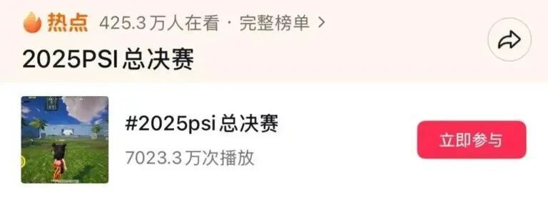 根据抖音话题数据,本届2025和平精英国际主播赛在抖音上的话题播放量已经累计突破7.5亿,PSI总决赛这一词条也登上了抖音热点话题,数以万计观众守候在屏幕前观看了赛事直播。