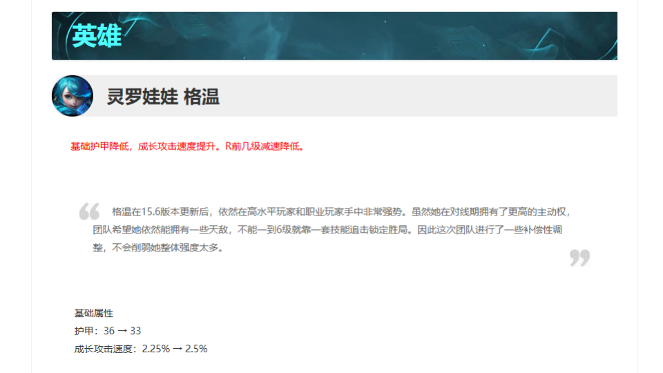 国服在8月28号,更新了15.17版本,不出意外的话,这个版本就是季后赛比赛版本,英雄的调整,主要集中在上下两路,上单格温、兰博同时遭到削弱,刀妹、腕豪这类传统战士,迎来了加强,下路女枪、塞纳两大赛场英雄小幅回调,薇恩、大嘴这种平A流的英雄,也得到一定的加强。