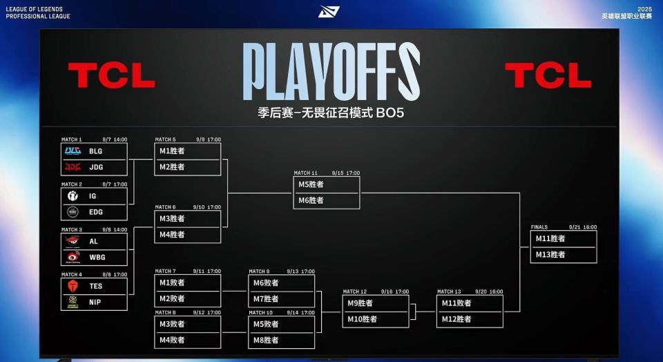 分区规则是一四二三,AL和TES在下半区,BLG和IG在上半区,这个分区很有意思,上半区的IG和BLG,最快第二轮就会遭遇(第一轮都赢),届时两队将展开BO5大战,而下半区,Doinb和小天,最快也是第二轮相遇(第一轮都输),上有Wei第三次复仇,下有金玉良缘,看点是真高啊。