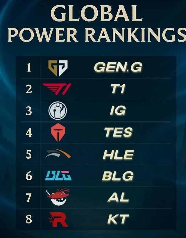 除了IG粉丝看好IG夺冠之外,拳头官方也非常看好IG,在最近更新的,LOL全球战队实力排名当中,IG排在全球第三的位置,榜单第一的队伍是MSI和石油杯双冠王GEN,排名第二的队伍是Faker带领的T1战队。其中AL和HLE实力排名变化最为巨大,在石油杯期间,HLE和AL的官方排名稳定前四,但是自从HLE中单zeka和AL中单香克斯状态下滑后,这两支战队在联赛内的统治力就不如其他队伍。