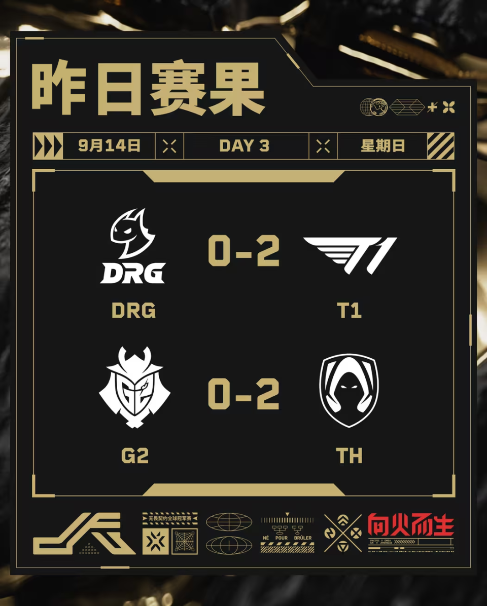 无畏契约巴黎全球冠军赛第三日的比赛已经结束!最终T1与TH成功挺进胜者组,而DRG将与G2在败者组展开生死战!