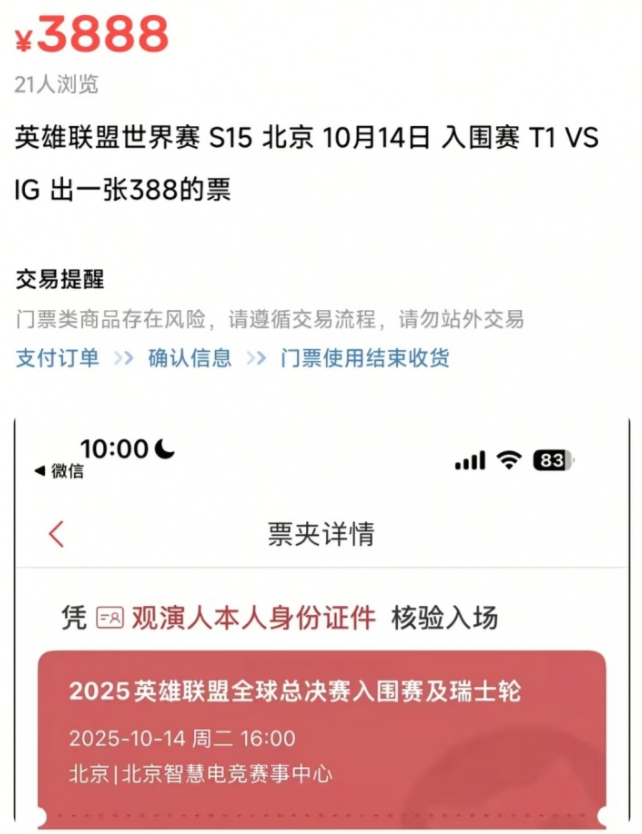 IG入围赛对战T1,门票已经被黄牛抢光,涨价10倍进行售卖