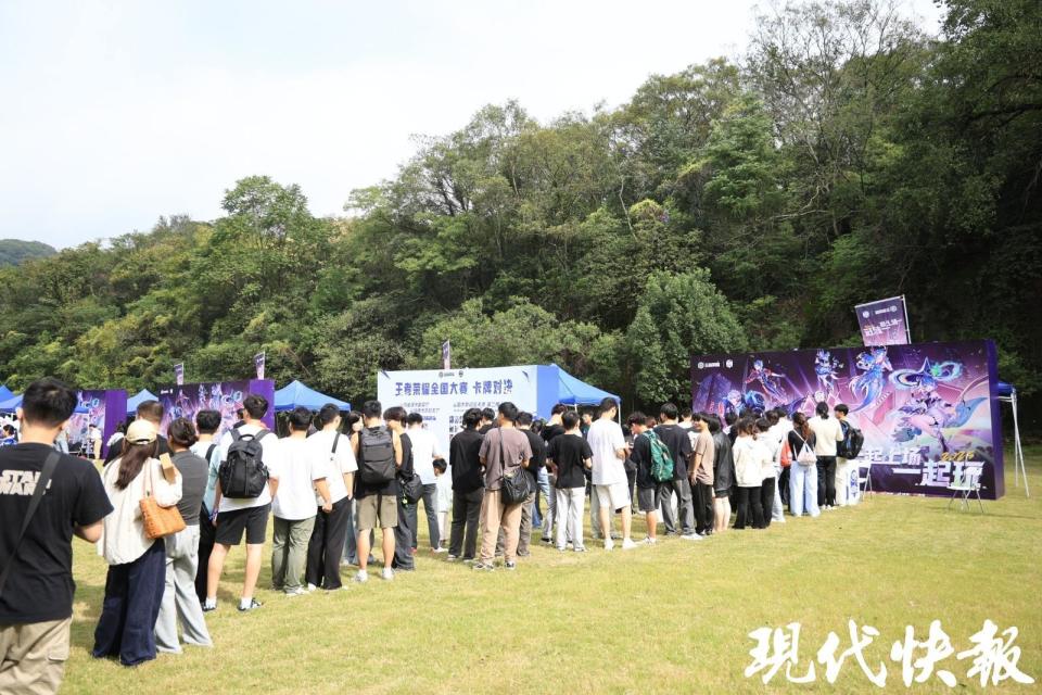 野营舞台的水友赛也人气高涨。无需报名、随到随玩的模式,搭配专业的600寸大屏,让不少游客过了把“电竞瘾”。家住浦口的王女士和妹妹一同组队参赛,她说:“我们平时在家就喜欢玩王者荣耀,听说这里有水友赛,特意早点来玩。中秋假期不用出远门,边比赛边游山玩水,我感觉很有意思。”