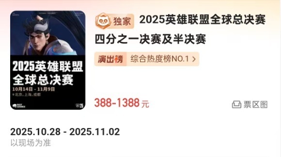 四分之一决赛和半决赛就全看运气了,能不能赌到Faker或者喜欢的LPL队伍是很难说的,这样抢票的难度或许会稍微低一些,追求抢票成功率的可以选择抢这个阶段的门票。