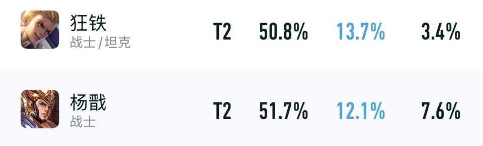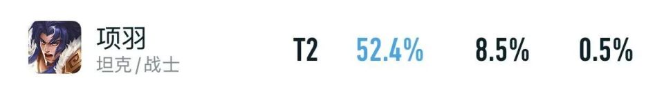 以上这三位对抗路,都是能在小规模的团战中,比如3v3或者2v2,打出不错效果的英雄,即便拖到后期也能给到射手压力,不像坦克那样笨重,属于S41新赛季的对抗路首选。不过,今天我主要想聊的英雄并不是他们,而是一位最近胜率也出现飙升的“边路黑马”,他就是项羽。