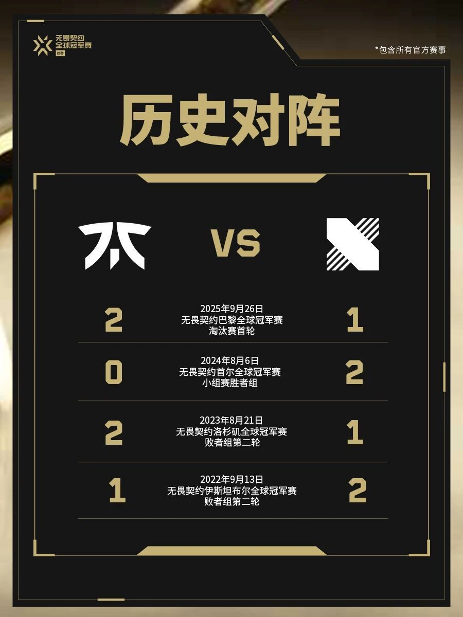 两支队伍在官方赛事中曾有过四次交手记录,最近一次就在本次巴黎全球冠军赛淘汰赛首轮。败者组决赛再战,是FNC延续优势再度获胜还是DRX成功“复仇”拿到关键胜利?
