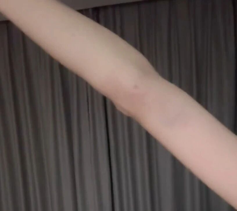 骆歆表示:“我这里你看得到吗,淤青了,但不是很严重,看到没有很像被打的。还有这个地方,但不是我今天弄的,是我那个前几天运动完了,去康复理疗的时候,用筋膜刀推的,当时我推的时候觉得有点痛,但没有那么痛,我这里摸着有一个有点大的结节,我以前完全不知道的。”
