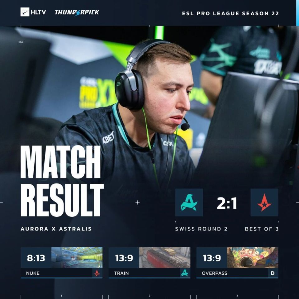 0-1组:Astralis 1-2不敌Aurora,濒临出局