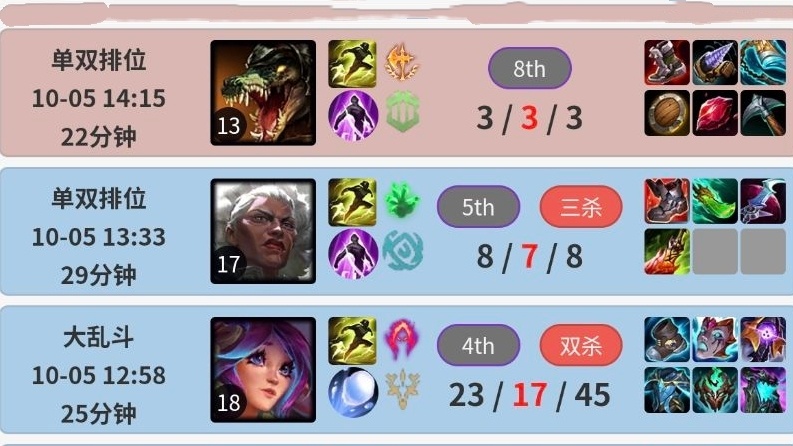 冒泡赛结束之后,连续12天没打排位的TheShy,也是突然重启Rank,打了一把大乱斗,找回手感之后,TheShy四把排位2胜2负,从战绩来看,状态似乎没有想象中那么好,其余四兄弟,最近倒是一直在坚持排位,Wei狂练琪亚娜、莉莉娅这类野核,就是不知道,入围赛敢不敢拿出来打。