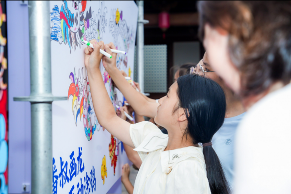 活动当天,重华宫殿前广场成为宋韵文化体验地。点茶工坊内,茶师现场传授点茶技艺,参与者亲手制作“宋代版拉花”,将足球、动漫角色等电竞元素融入点茶艺术,体验者纷纷表示“既学到了非遗技艺,又充满趣味”。漫游星次元区域则充满艺术与潮流气息,联动漫画家魏一番的《仙龙掌》品牌打造的波普涂鸦墙前,亲子家庭与年轻游客共同创作,用色彩为德寿宫增添活力。此外,快乐充能游戏馆的复古红白机唤起儿时回忆,宋代阁楼风格的弹珠机融入飞檐、斗拱元素,成为连接古今游戏趣味的独特载体。