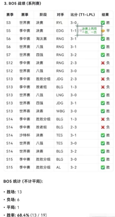 不过,冷静来看,想要战胜T1并不容易。T1的体系成熟,Faker的经验更是无可比拟,而入围赛这种关键战场对心态与稳定性要求极高,对于初登S赛舞台的新人而言,这种压力往往比操作更难克服,更重要的是,从数据上看,Faker在长局BO5中的胜率远高于BO3和BO1,这意味着在容错率较高的赛制下,他和T1会更具优势。