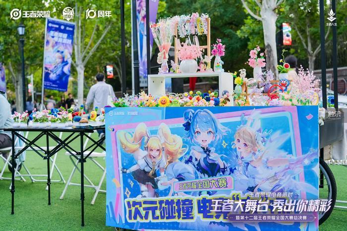 我还在观赛区遇到了两位来自唐山的女孩,当时她们正把一个孙尚香的娃娃摆在草坪上,打造出一种野餐的效果。其中一个向我展示她的游戏账号:“2015年开始玩这个游戏,到现在快有10年了,真的是10年老玩家了!”这次来看全国赛事也是她们整个国庆假期唯一的出行活动。