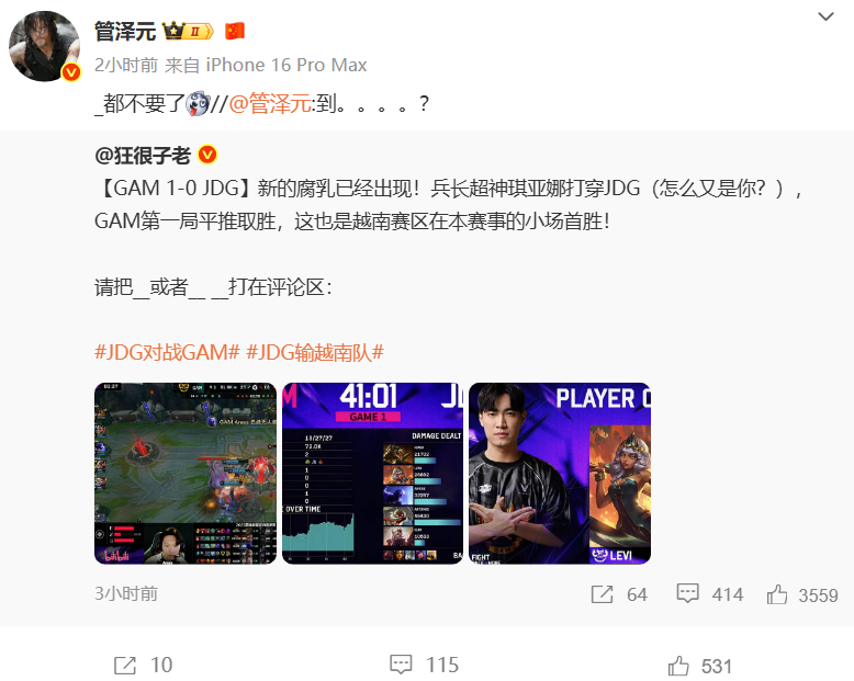JDG遭越南队GAM零封!创造历史,JDG成为LPL首支BO3输给越南战队的队伍!米勒:真的丢脸!