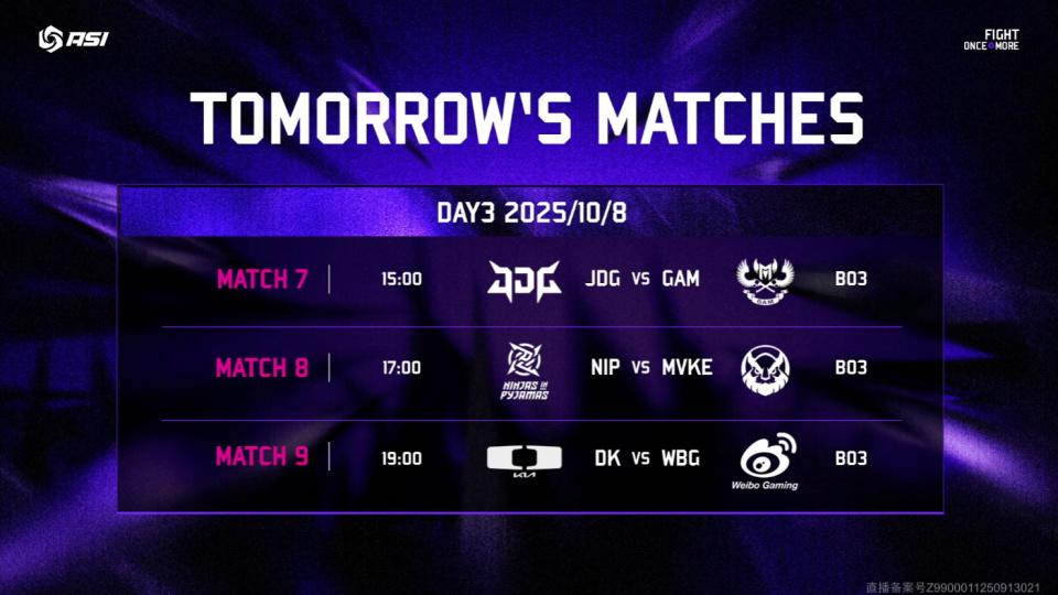 10月8日的比赛,由JDG大战GAM,NIP大战MVKE,以及焦点之战DK对阵WBG三场组成。在率先结束的第一场比赛中,GAM创造历史,在BO3中零封JDG;第二场比赛,越南VKE掉线,NIP反败为胜;那么第三场,WBG和DK,又会带给什么样的震撼呢?