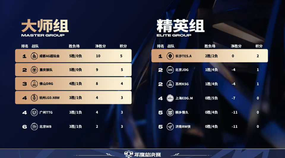 TES在让二追三战胜LGD之后,又3-2终结了DRG的连胜,后程发力登顶了精英组。目前精英组剩下的队伍里理论最高分只有2分,TES如果能在今晚战胜WB的话,则将直接锁定淘汰赛名额。即便输掉,只要其他队伍拿不到第二胜,TES依旧可以稳坐精英组第一。