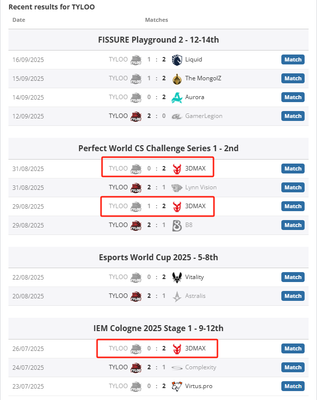 但夺冠的余晖并未持续太久,在随后的IEM科隆中,TYLOO早早离场。在与3DMAX对抗的比赛中,似乎是由于战术被对手“破译”,在敌方采取针对性打法之后,TYLOO无法有效对抗取得三连败,暴露了战术模式单一的问题。而在强队更多的裂变天地S2中,他们没能展现出卫冕冠军的实力,在首战赢下GamerLegion后便三连败出局,也暴露出明显的稳定性问题。