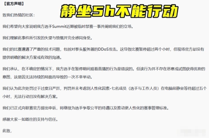 尽管此举在规则层面似乎无可厚非,但也让外界对于“处罚是否合理”“规则是否人性化”展开了激烈讨论,EST方面在第一时间发表声明,承认Summit的行为确实违反了规则,但强调这并非出于恶意,也没有任何企图借此获取比赛优势。