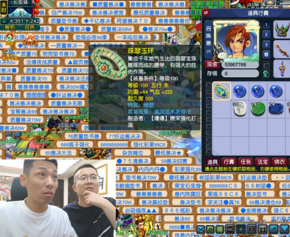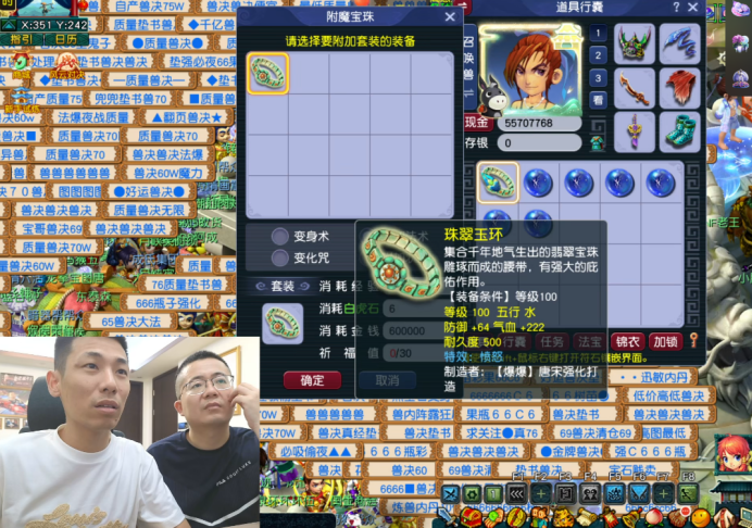 其中有两个图没截到,两个分别是五雷咒跟龙吟,最后一个以靛沧海结束!因为现在区里的附魔太少了,只能结束了,后面等货多了再继续附魔。后面又丢给宝哥两个分别是紧箍咒跟阎罗令!