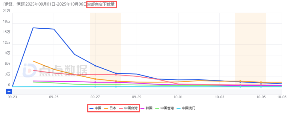 9月25日,《伊瑟》正式上线中国大陆、中国港澳台以及日韩6大区域市场,游戏提前一天开启预下载,并在当天斩获31.7万的日下载(不包含国内安卓端,下同),一举登顶除韩国(第6)以外其他5大市场的iOS游戏免费榜TOP1。此后,该作最高曾冲上iOS游戏畅销榜中国第26名、中国台湾第15、中国香港第12、中国澳门第22、韩国第26,日本第54。