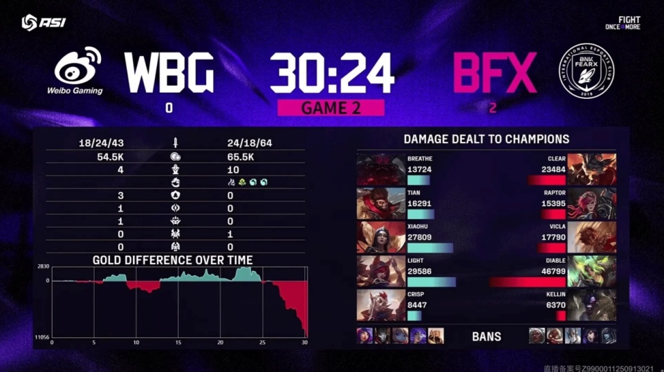 WBG在本次ASI上被寄予厚望,因其在小组赛中横扫DK成为小组第一晋级,本以为WBG身处死亡之组高位,能够顺利击败NS晋级,结果对阵NS的比赛被对手让一追二输掉比赛落入败者组,今天对阵BFX的比赛是他们最后的机会。