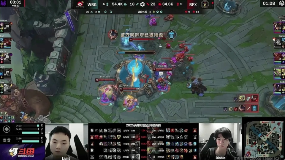 LOL首届亚洲邀请赛的比赛在今天结束了淘汰赛败者组阶段的对决,结果来自LPL赛区的WBG战队是被LCK赛区的BFX战队以2-0的比分击败最终止步四强。