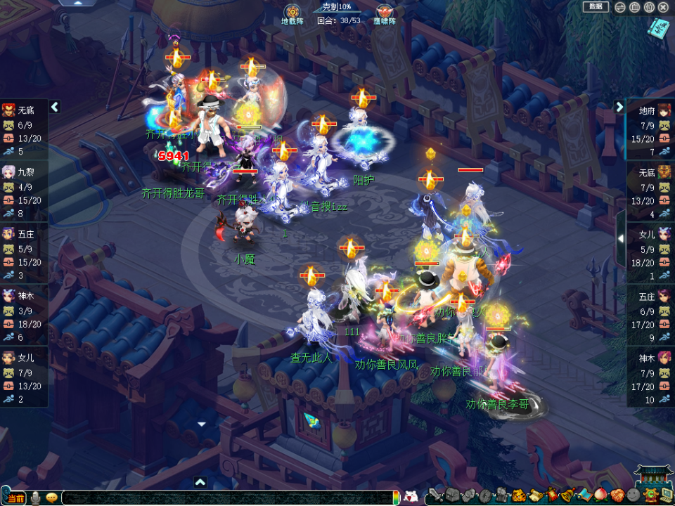 比赛前期,双方主要以加状态和清宠为主。不过,比赛第38回合时,【劝你善良】抓住机会,一波点掉【齐开得胜】五庄观,打破了其双封体系。