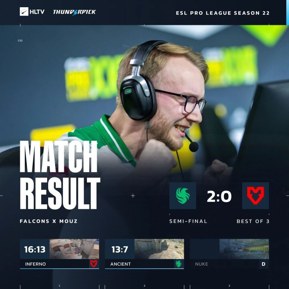 半决赛:Falcons 2-0淘汰MOUZ,晋级决赛!