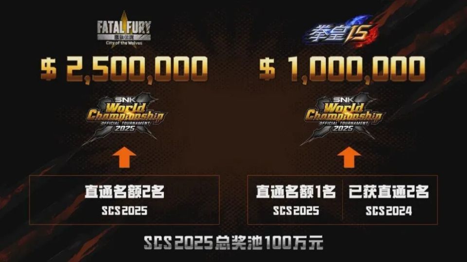 值得关注的是,SCS 2025年度总决赛除了《拳皇15》《饿狼传说:群狼之城》两个项目的年度总冠军之争,还将诞生3个SWC 2025(SNK World Championship 2025)的直通名额——这也是除LCQ外,SWC 2025总决赛最后的晋级机会,竞争将进一步白热化!