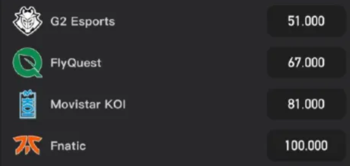 而排在第三位的,则是来自LPL的BLG,赔率为6倍,这支战队凭借整个赛季的出色表现,成为LPL最被看好的夺冠希望,无论是Bin的上路压制,还是Xun与Knight的中野联动,都让他们在强队林立的LPL脱颖而出,BLG能拿到仅次于GEN和HLE的赔率,也说明国际分析机构普遍认可他们的体系完整性与比赛执行力。
