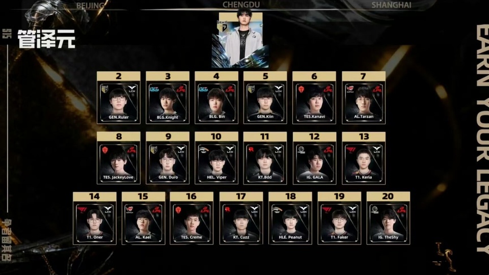 除了比分预测之外,大校和米勒,还对世界赛参赛选手,进行了TOP20排名,位列第一的,毫无悬念是Chovy,紧接着就是尺帝,BLG的上中分别位列三四名,IG只有两个人上榜,嘎子排第12,TheShy位列榜单最末,强队基本上都有选手上榜,整个榜单都被LPL和LCK两个赛区包揽。
