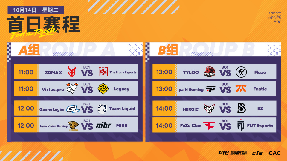 10月14日11:00,CAC 2025正式拉开战幕,首日共8场Bo1和4场Bo3比赛。首轮赛程如图,欢迎大家届时收看。