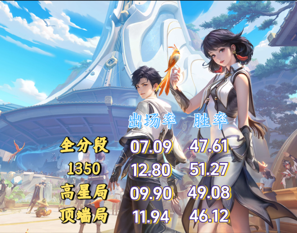 仅仅一人上榜,太乙真人可能在大众对局中很少见到,但在高端局里可谓常客,因为独特的加钱特性,使得他能让某个位置的发育速度变得更快,同时可攻可守的技能机制非常全面,只是因为操作上的时机有要求,所以分段不高的玩家可能难以精准驾驭。