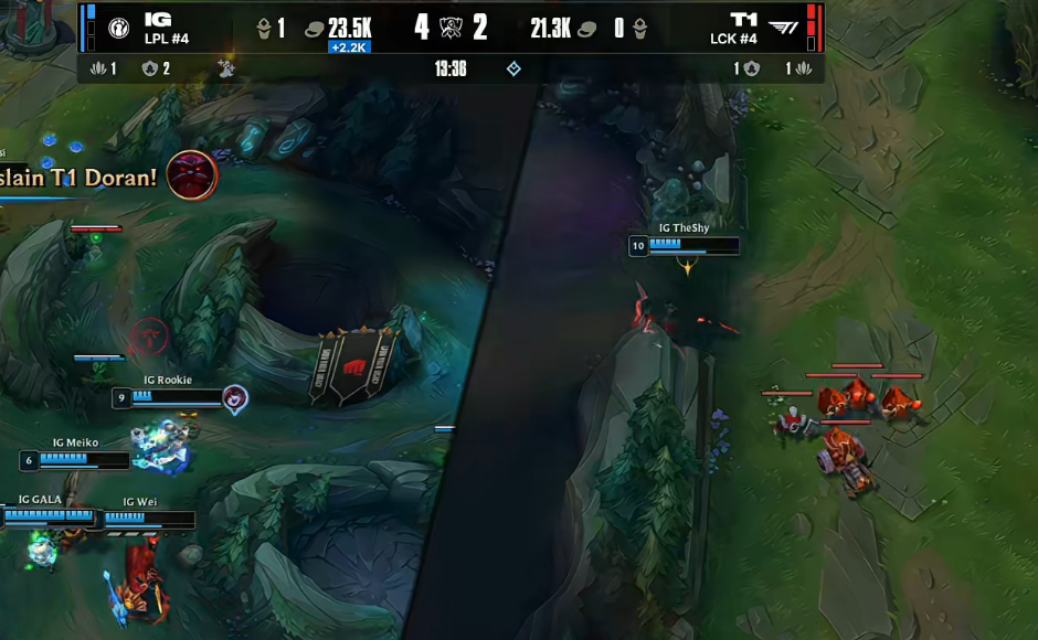 theshy越塔单杀多兰!巨大优势越塔失败,Faker三抬翻盘iG