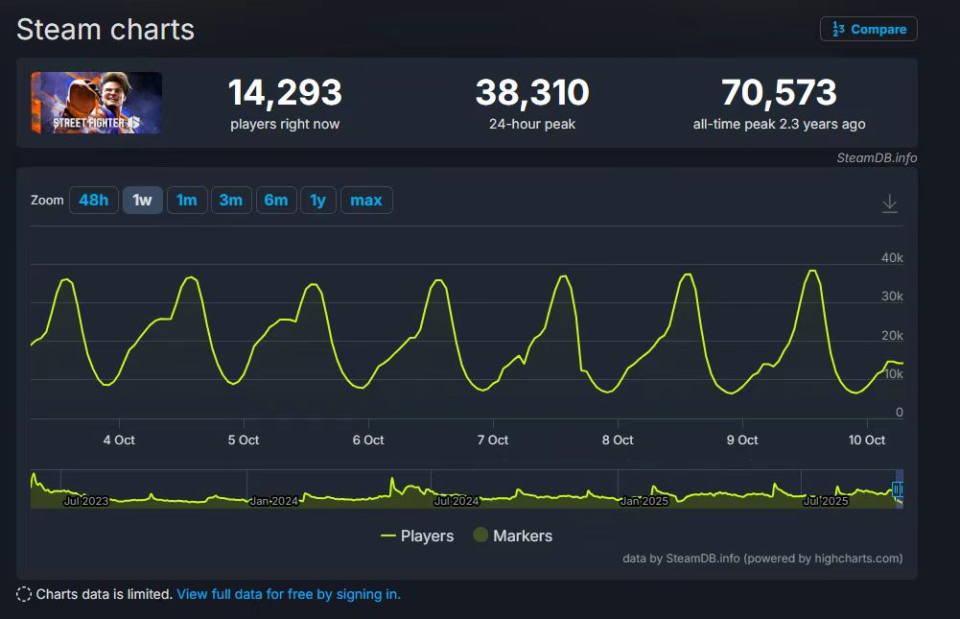 在主流论调里,街机时代叱咤风云的格斗游戏在如今已经是式微、小众的旧时代残党。这种论调也不能说错,即使是新世代最火的格斗游戏《街霸6》Steam平台的日常最高在线也就4万左右。
