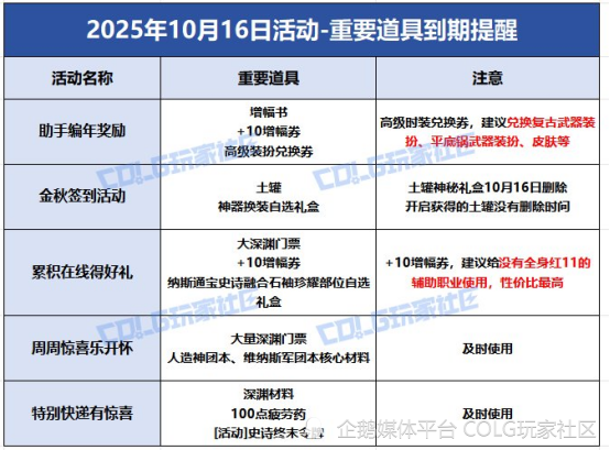 注意:①各种礼盒道具,都会在10月16日删除,勇士一定不要忘记开启!