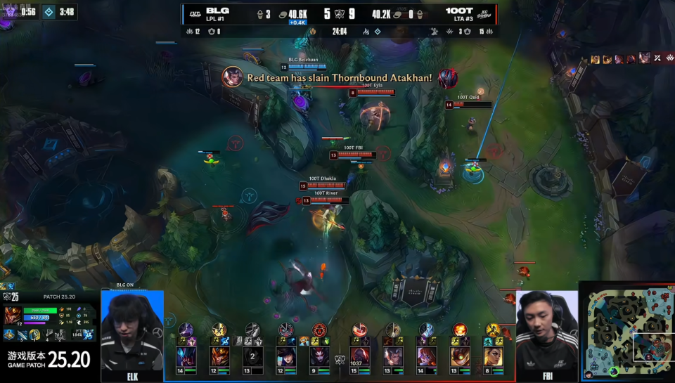 BLG爆冷0-1不敌100T,首秀失败!上野狂失误,ELK女警难救主