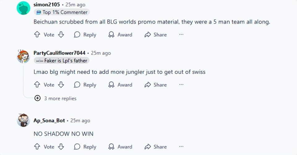 -哈哈,BLG 可能需要增加更多的打野才能杀出瑞士轮。