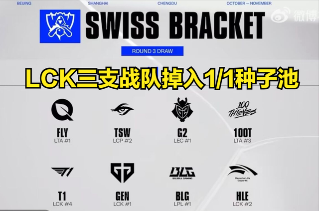 在T1输给CFO后,本届S15世界赛也是迎来了一个非常奇葩的现象,那就是赛前公认的四大夺冠热门战队,HLE、GEN、T1以及BLG全部掉入1/1的败者组。正因为败者组竞争激烈,很多BLG粉丝也是担心BLG会在瑞士轮当中遇见LCK的队伍。不过好在IG名宿选手宝蓝,在抽签环节当中上演“神之一手”,先是给BLG抽到G2,随后更是让T1和GEN在瑞士轮提前相遇,不少LCK粉丝都在质疑宝蓝在给LCK战队“做局”。