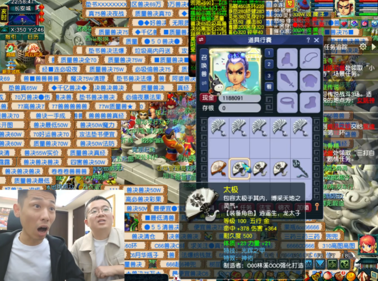 宝哥原话是让毕总给他当垫子,没想到竟然出了双蓝字,100级的扇子,伤害+364,命中+378,体质+23,力量+21,特技是光辉之甲,特效是神佑,这个辅助毕业武器,而且竟然是林溪出的,前面宝哥的林溪的未鉴定都不出货,这波不会宝哥给毕总当了垫子吧。当时有人就出22万要收,结果弹幕有的说老板是有钱不是傻,根本不值这么多钱!