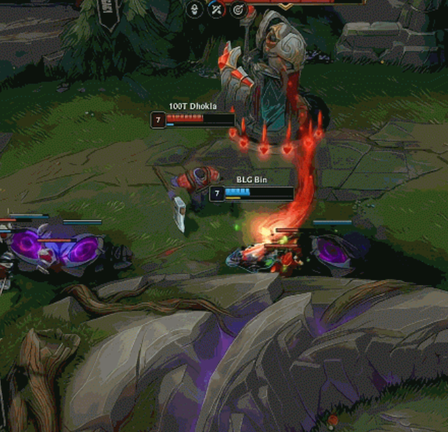 开局不到10分钟,BLG上单Bin的雷克塞就贡献了整场最“经典”的镜头,8分多钟时,他主动选择越塔想要阻止100T上单Dhokla的赛恩回城,试图打出压制力,但一系列“神操作”让观众都看傻了——Bin先是挖地洞进塔,走位失误,随后又钻地洞回去,被防御塔连打多下,硬生生把自己挖进塔下送出人头,这波操作不仅没拿到任何收益,反而直接让Dhokla白嫖一头,还顺势稳稳起飞。