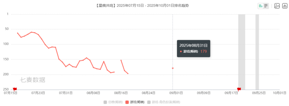 App Store游戏畅销榜方面,《星痕共鸣》在8月18日飞榜后便只在8月31日简单“露脸”,之后便再无动静。不少人觉得,《星痕共鸣》如此成绩一方面是内功有限,另一方面也是未能抓住令二次元+MMO实现“1+1>2”的法门,从而让产品从尴尬走向低迷。