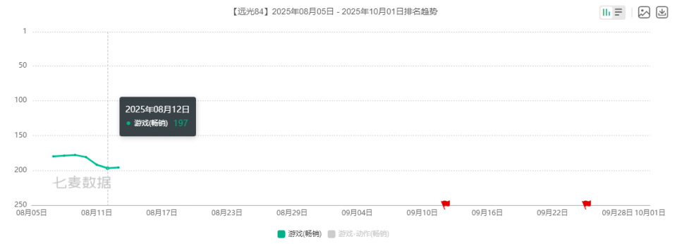 上线仅一周,《远光84》便颓势尽显,七麦数据显示,游戏在公测首日仅冲到了App Store游戏畅销榜第180名,7天后便彻底在TOP250中消失,再也未能回来。App Store游戏免费榜方面,游戏也掉到了第300名开外。据FoxData预估,《远光84》在iOS端的首周收入仅有25000美元左右。