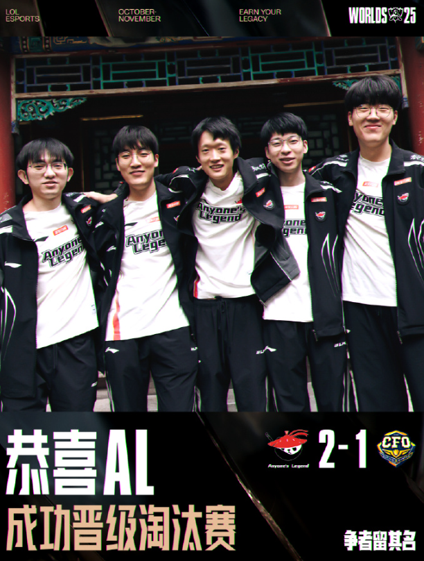 10月17日,2025年《英雄联盟》全球总决赛迎来了瑞士轮第三轮的比赛。当天进行的是两场2胜0负队伍之间的出线战,谁能赢下这个BO3,就能率先拿到通往上海八强赛的门票。经过激战,KT以2-0击败TES,拿下第一张八强门票;随后AL让一追二,以2-1战胜CFO,拿下第二张门票。目前LCK和LPL各有一支队伍晋级,而TES与CFO落败后进入2胜1负小组。
