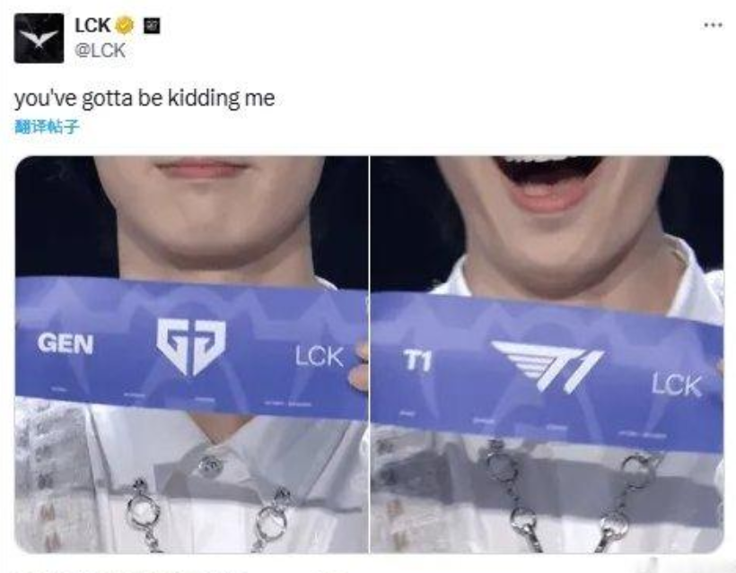 当抽签结果公布的瞬间,LCK官方推特直接发文:“你在逗我吗?!”——短短一句话,完美诠释了他们此刻的心情。评论区瞬间沦陷,不少韩国网友表示“命运太残酷”、“这肯定是抽签阴谋”,还有粉丝调侃说“宝蓝是不是戴了TES的幸运手套来抽签”。
